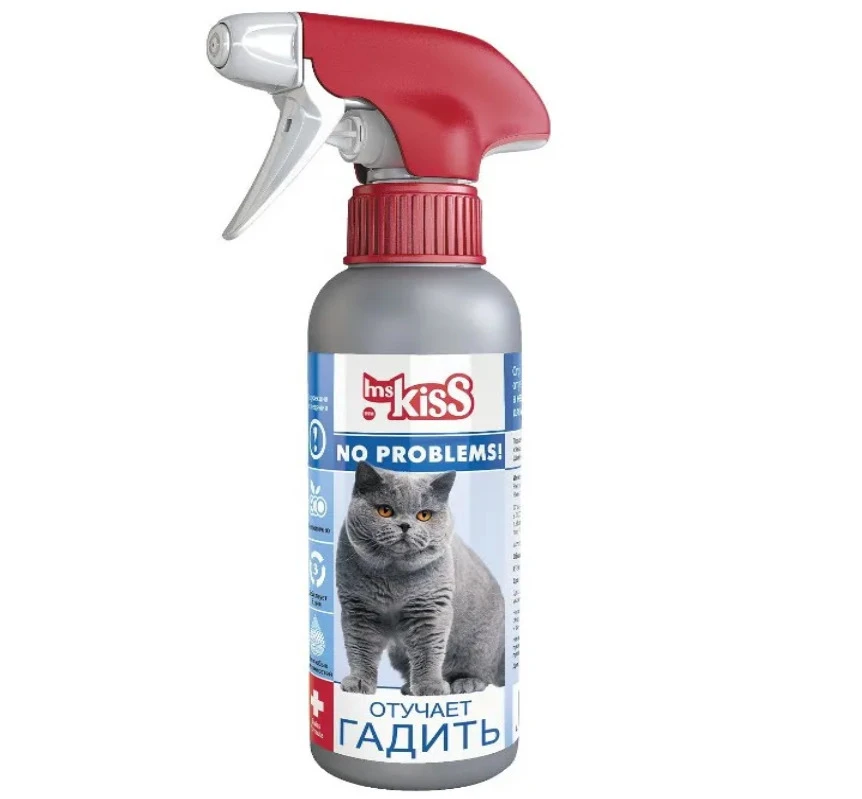 Спрей зоогигиенический Ms.Kiss «Отучает гадить» предназначен специально для облегчения ухода за котятами и взрослыми кошками. Его применение способствует выработке у кошек устойчивого рефлекса не метить территорию и не справлять нужду в непредназначенных для этого местах.