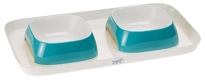 Пластиковый поднос с синими мисками GLAM S для кошек и собак