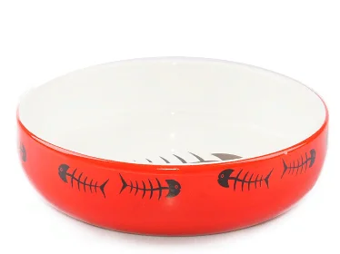 Миска Mr.Kranch керамическая для кошек 300 мл красно-белая с рыбками