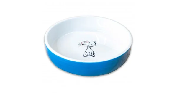 Миска Mr.Kranch керамическая для кошек Кошка с бантиком 370 мл голубая