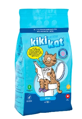 Бентонитовый наполнитель для кошачьего туалета “KikiKat” супер-белый комкующийся. Супербелый бентонит.