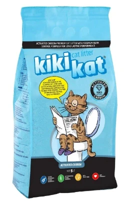 Бент. наполнитель д/кош.туал.KikiKat супер-белый комкующийся Активированный уголь 5л