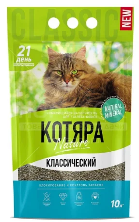 Комкующийся наполнитель КОТЯРА Классический с новой формулой NATURAL MINERAL полностью натуральный экологически чистый состав, естественный и комфортный для кошек.