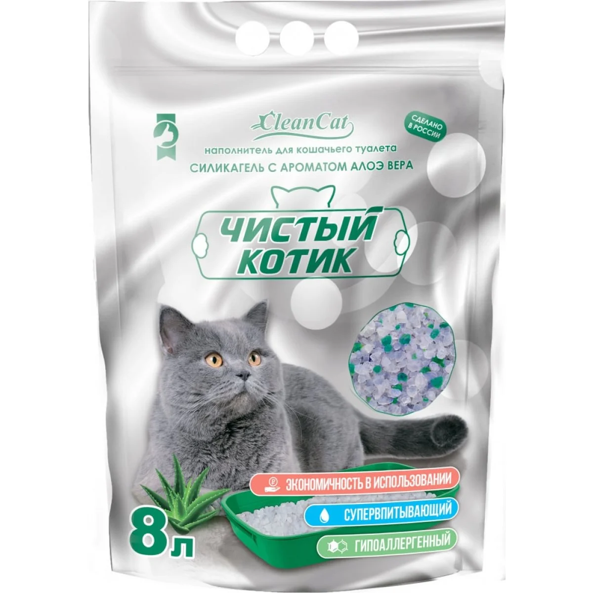 Наполнитель силикагелевый "Чистый котик" колотый с ароматом алоэ вера 8л