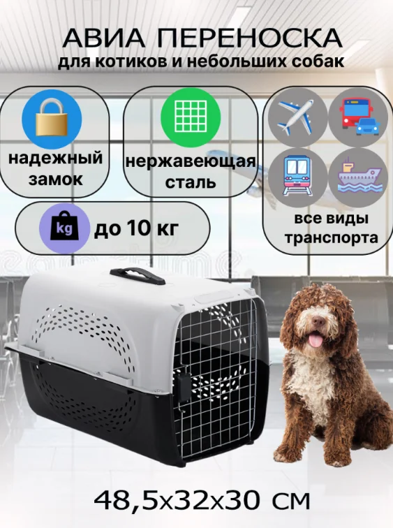 Авиа переноска для домашних животных "Чистый котик" 48,5*32*30 см серый