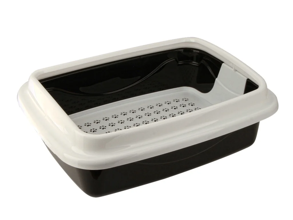 Пластиковый туалет для взрослых кошек с сеткой. Подходит для использования любых наполнителей, как комкующихся, так и силикагелевых и гранулированных.
