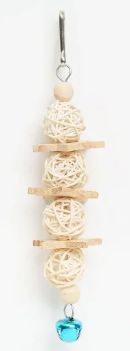 Изготовлена из материалов, безопасных для птиц. Подвешивается к прутьям клетки. На игрушке есть звенящий бубенчик. Разнообразит досуг пернатого друга, не даст ему заскучать.