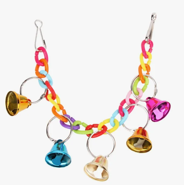 Игрушка-колокольчик с кольцом, предназначенная для птиц. Изготовлена из высококачественного, прочного металла и пластика. Отличный аксессуар для игры и развлечения ваших пернатых друзей. Размеры указаны на картинке. В комплекте 1 шт. колокольчика (цвет аксессуара случайный).