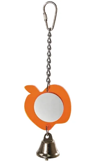 Игрушка для птиц в форме яблока с круглым зеркальцем и колокольчиком. Крепление: карабин. Цвет: в ассортименте. Размер: 95/195*60мм.