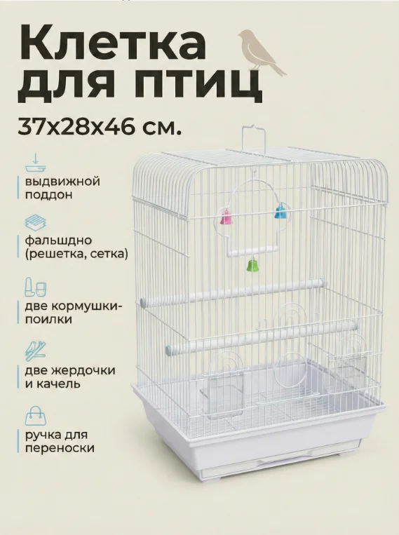 Клетка оснащена фальшдном, которое позволяет поддерживать чистоту без лишних усилий. Благодаря ему и выдвижному поддону, Вы сможете легко убирать мусор и отходы, не беспокоя птицу.