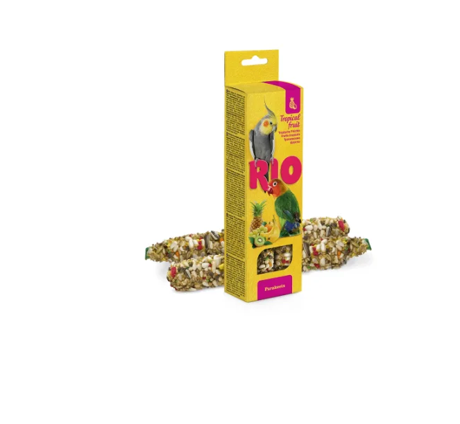 Лакомство для средних попугаев с тропическими фруктами. Дополнительное питание для декоративных птиц. Просо желтое Канареечное семя Сафлор Дробленые раковины устриц Овсянка Гречиха Подсолнечник Хлебопекарные продукты Паникум красный Кунжут Фрукты (ананас, банан, апельсин, киви, изюм) — 2% Пшеница Продукты растительного происхождения Мед