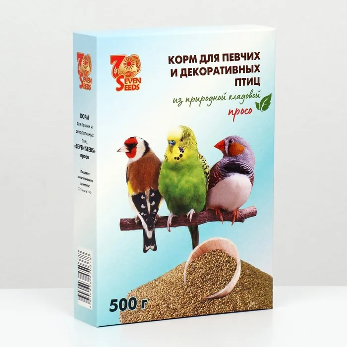 Просо – распространенный вид корма для всех растительноядных птиц: попугаев, амадин, канареек, щеглов и других декоративных птиц. Является незаменимым компонентом во всех зерновых смесях. Богато витаминами и аминокислотами. Неочищенное зерно очень хорошо давать в проросшем виде. А для птенцов и больных птиц рекомендуется давать набухшим (залейте горячей водой и оставьте на ночь в термосе). Одному попугаю необходима одна или две столовые ложки в сутки.