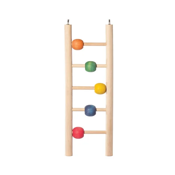 Игрушка для птиц в виде лестницы с пятью ступенями, украшенными цветными деревянными шариками.