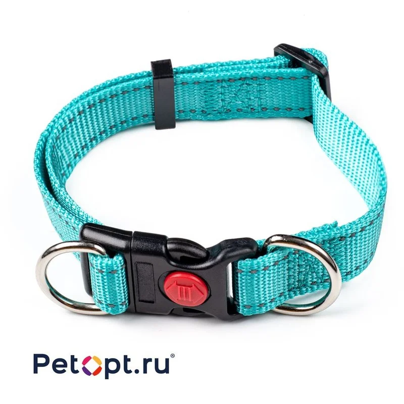 10010069 PetOpt Ошейник светоотражающий нейлон регулируемый с фиксатором Голубой L-30mmX45-70cm. Ко