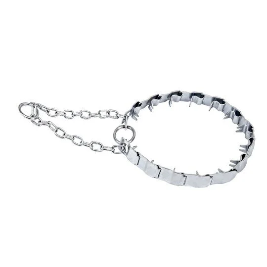 Ошейник из металлических пластин с загнутыми со стороны шеи собаки шипами. Детали ошейника оцинкованные. Ошейник собран из 15 оцинкованных звеньев - 12 основных звеньев, 2 крайних звена, 1 соединительное звено. Ширина звена 2,2 см. Длина ошейника 50см.
