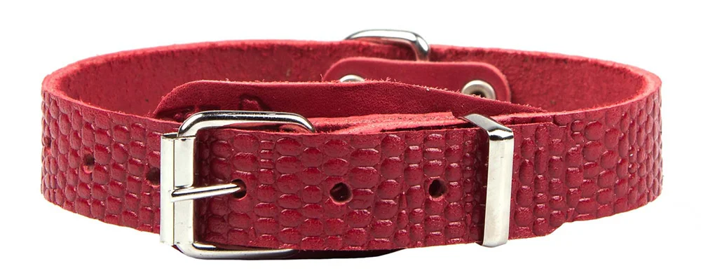 Серия ошейников “Рептилия” из натуральной шорно-седельной кожи с фактурным тиснением под рептилию - простые, универсальные, с украшениями и адресной биркой.