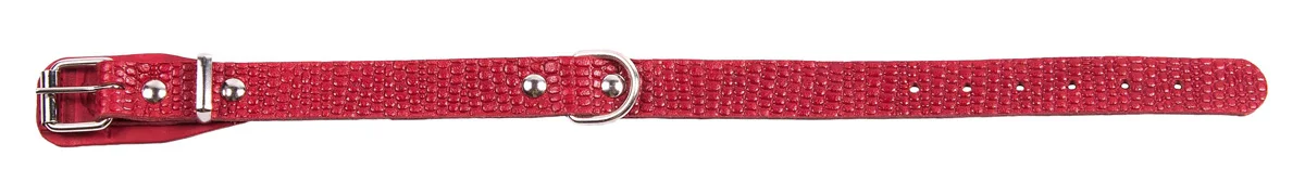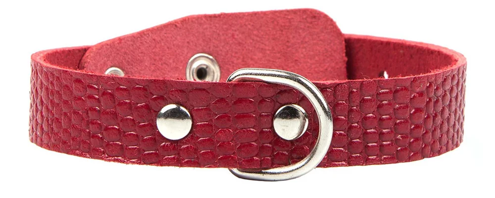 Однослойный ошейник из тисненой натуральной кожи, не прошитый, ширина 18 мм, полукольцо посередине.