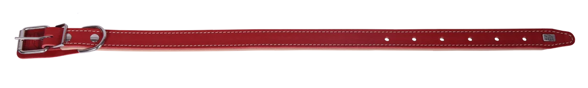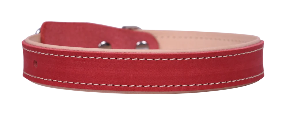 Трехслойный ошейник из натуральной кожи, края в загибку, проклеен и прошит декоративной строчкой, полукольцо у пряжки.