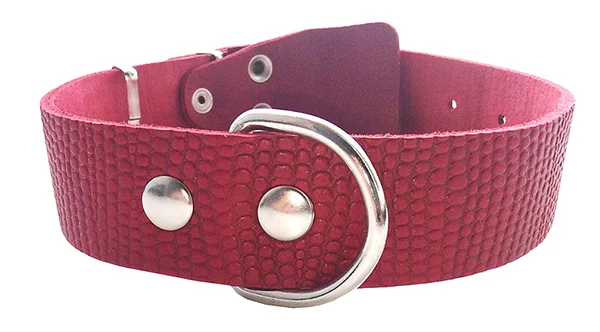Однослойный ошейник из тисненой натуральной кожи, не прошитый, ширина 35 мм, полукольцо посередине.