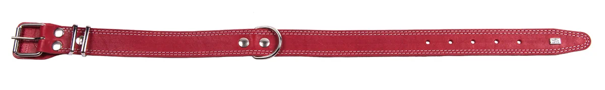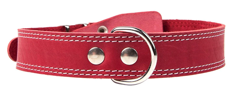 Однослойный ошейник из натуральной кожи, прошит декоративной строчкой, полукольцо посередине.