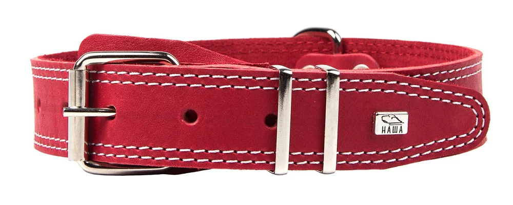 Ошейники из натуральной кожи и комбинированные, однослойные, двуслойные и трехслойные, гладкие и украшенные, с адресной биркой и светоотражающей полосой, строгие и с грузами для тренировок.