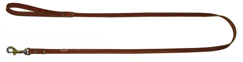 Поводок для собак №12 изготовлен из натуральной кожи, цельнокроенный, не прошитый, с фактурным тиснением.