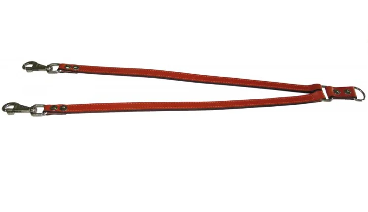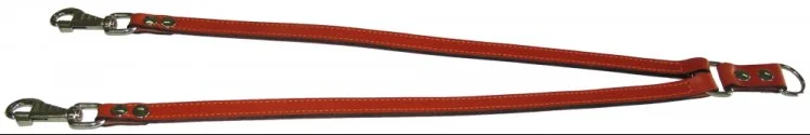 Раздвоенный поводок-сворка двухслойный из натуральной кожи, прошитый. Назначение: для выгула двух собак крупных пород. Ширина: 16 мм Длина: 70 см