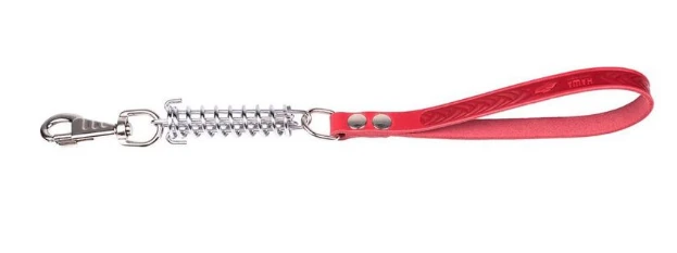 Водилка однослойная из натуральной кожи. Отлично подойдет собакам на 60-70 кг. Амортизатор предназначен для компенсации нагрузок при рывке собаки. Вся нагрузка переходит не на руку хозяина, а на амортизатор