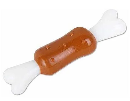Ароматная, резиновая косточка, приятно пахнущая курицей. Изготовлена из качественной резины, очень прочная и разгрызть ее нелегко.
