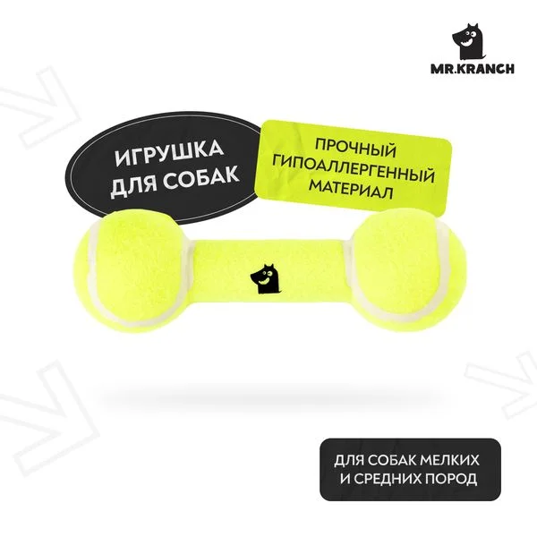 Игрушка Mr.Kranch для собак Гантель большая 20 см желтая