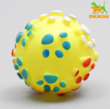 Игрушка пищащая "Мяч Лапка" для собак, 6,5 см, желтая 7127488