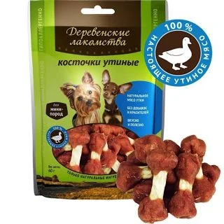 Уникальный продукт, выполненный в виде мягкой жевательной косточки, удовлетворит самый изысканный вкус и станет любимым угощением для собак маленьких пород. Лакомство из отборного мяса утки и сыромятной говяжьей кожи содержит большое количество питательных веществ, витаминов и минералов для здоровой и активной жизни вашего питомца. Произведенный без использования красителей и специй продукт замечательно усваивается организмом, не вызывает аллергии. Вкусные и полезные косточки прекрасно подойдут в качестве вознаграждения за хорошо выполненную работу.