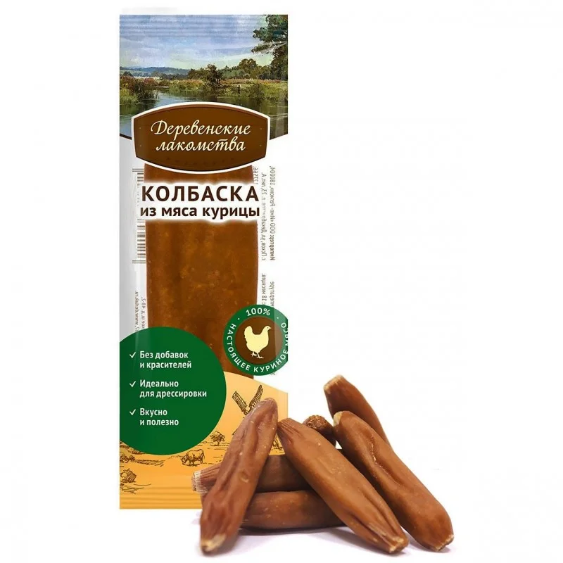 "ДЕРЕВЕНСКИЕ ЛАКОМСТВА" Д/ВЗРОСЛЫХ СОБАК ВСЕХ ПОРОД МИНИ КОЛБАСКИ ИЗ МЯСА УТКИ И ЯГНЁНКА 8г 76050106