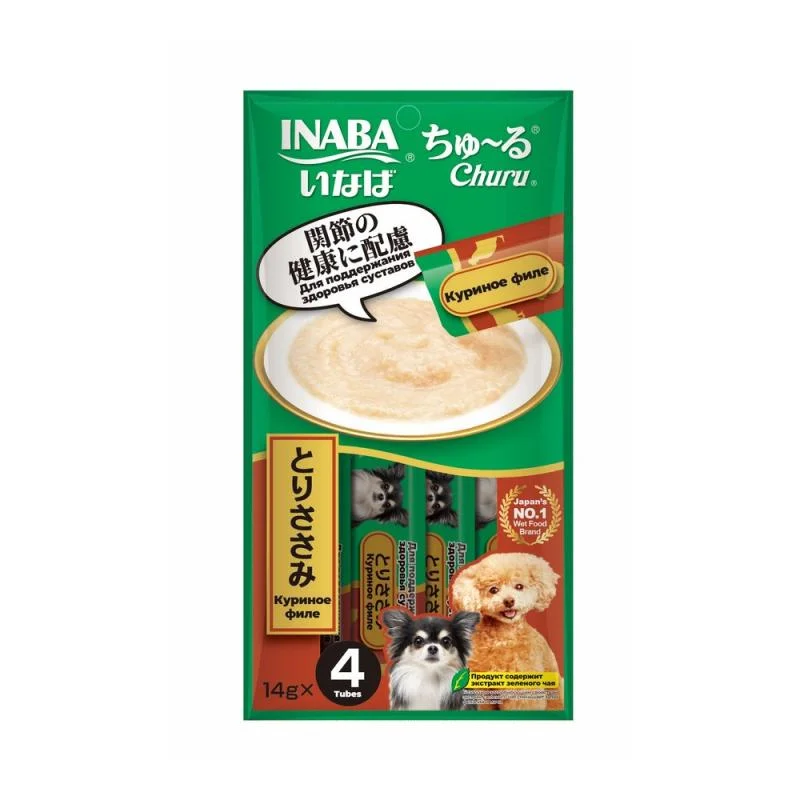 Функциональное пюре-лакомство Churu (ЧУРУ) на основе куриного филе для поддержания здоровья суставов от японского производителя Inaba изготовлено исключительно из натуральных ингредиентов и отличается высоким процентом влажности, благодаря чему поддерживается водный баланс организма собаки. Корма и лакомства Inaba отличаются высоким качеством и неповторимым вкусом, ведь они изготавливаются только из отборных традиционных японских ингредиентов! Удобная упаковка позволяет кормить питомца прямо с рук, используя лакомство для поощрения или дрессировки или использовать его как топпинг к сухому или влажному корму. Во все продукты добавлен экстракт зеленого чая, который, благодаря содержанию катехина, обладает нейтрализующим действием на запах содержимого кишечника. Пюре-лакомство обогащено витамином Е - натуральным антиоксидантом, поддерживающим иммунную систему, не содержит искусственных добавок, красителей и консервантов.