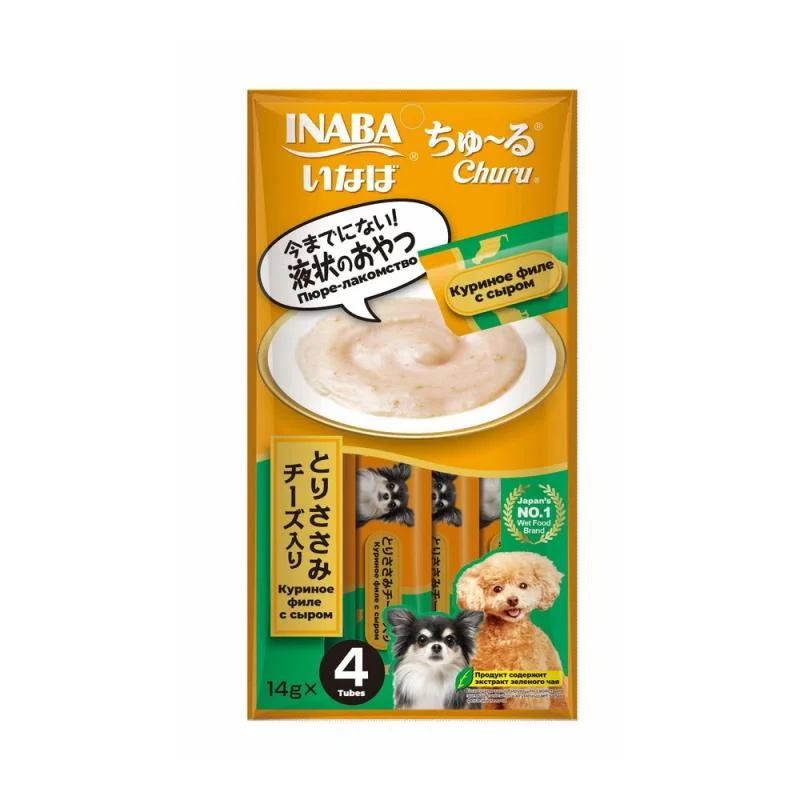 Суперпремиальное пюре-лакомство Churu (ЧУРУ) на основе куриного филе с сыром от японского производителя Inaba изготовлено исключительно из натуральных ингредиентов и отличается высоким процентом влажности, благодаря чему поддерживается водный баланс организма собаки. Корма и лакомства Inaba отличаются высоким качеством и неповторимым вкусом, ведь они изготавливаются только из отборных традиционных японских ингредиентов! Удобная упаковка позволяет кормить питомца прямо с рук, используя лакомство для поощрения или дрессировки или использовать его как топпинг к сухому или влажному корму. Во все продукты добавлен экстракт зеленого чая, который, благодаря содержанию катехина, обладает нейтрализующим действием на запах содержимого кишечника. Пюре-лакомство обогащеновитамином Е - натуральным антиоксидантом, поддерживающим иммунную систему, не содержит искусственных добавок, красителей и консервантов.