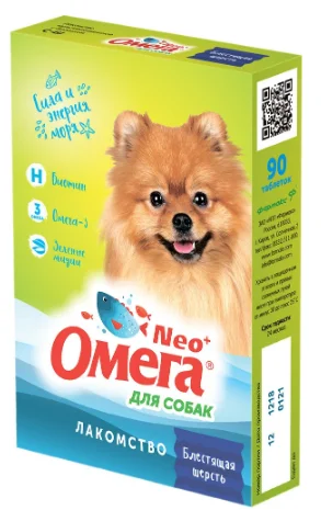 Омега Neo+ — вкусное и полезное лакомство для поощрения, баловства, дрессировки и поддержания естественной красоты шерсти собак.
