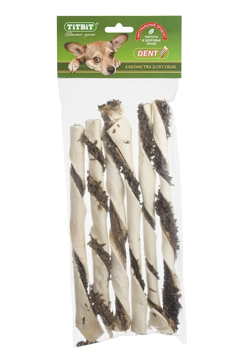 Высушенный завиток из говяжьей кожи с начинкой из рубца говяжьего. Благодаря большому содержанию аминокислот и коллагена положительно воздействует на хрящевую ткань, состояние кожи и шерсти собаки. Рубец улучшает аппетит, устраняет ферментную недостаточность и придает лакомству особый вкус, который так нравится собаке. Благодаря волокнистой структуре являются своеобразной зубной щёткой, способствующей укреплению дёсен, удалению зубного налёта и профилактике образования зубного камня.