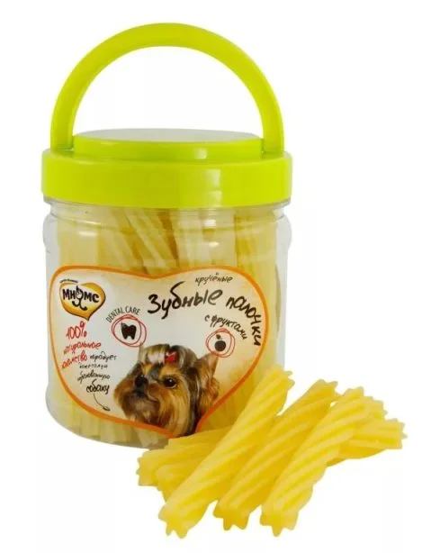 Крученые зубные палочки для собак от “Мнямс” - это тонкие спиральки с фруктами, аромат которых привлечет даже самого капризного любимца. Оригинальная форма и текстура помогают очистить зубы собаки от налета и защитить десны. Вкусное и здоровое угощение идеально подходит в качестве поощрения для игр и тренировок.