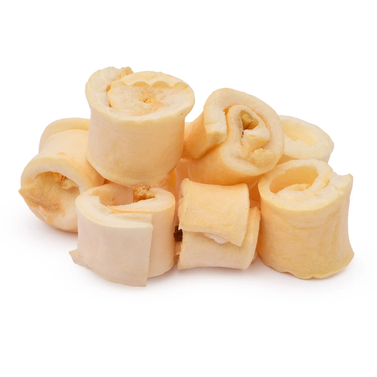 Высушенная говяжья кожа с начинкой из кишок говяжьих. Благодаря большому содержанию аминокислот и коллагена положительно воздействует на хрящевую ткань, состояние кожи и шерсти собаки. Кишки возбуждают аппетит и придают лакомству особый вкус, который так нравится собаке. Благодаря волокнистой структуре являются своеобразной зубной щёткой, способствующей укреплению дёсен, удалению зубного налёта и профилактике образования зубного камня.
