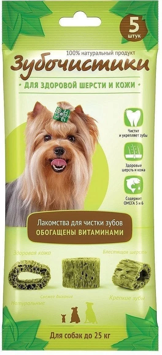 Зубочистики - лучшие лакомства для чистки зубов, отлично снимают зубной налет, предотвращают появление зубного камня, и борются с болезнями десен. Запатентованная структура позволяет сделать чистку максимально эффективной, сопоставимой с механической. Существенное содержание кальция укрепляет кости и зубы собаки. 100% натуральный состав и отсутствие любых искусственных ингредиентов способствует легкому усваиванию.