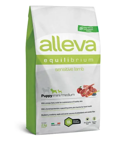 Корм для щенков мелких и средних пород Аллева Эквилибриум Сенситив с ягненком 2 кг P6000