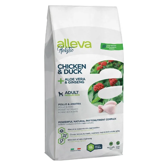 Alleva Holistic Adult Mini Chicken&Duck+Aloe Vera&Ginseng сухой беззерновой корм для взрослых собак мелких пород с курицей, уткой, алое вера и женьшенем