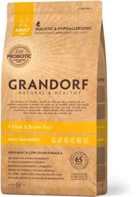 Grandorf Living Probiotics 4 вида мяса с бурым рисом - сухой низкозерновой корм класса холистик с живыми пробиотиками.