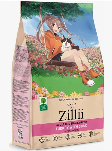 Полнорационный гипоаллергенный сухой корм для собак ZILLII ADULT SMALL BREED Turkey with Duck с мясом индейки и утки прекрасно подойдет собакам мелких пород, укрепит иммунитет животного и не вызовет аллергических реакций.