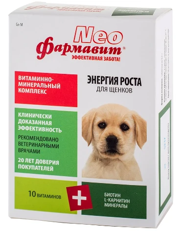 Фармавит Neo – комплекс витаминов, аминокислот и минералов, подобранных с учетом физиологических особенностей щенков.