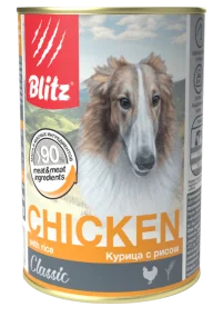 BLITZ Курица с рисом, корм консерв.полноц. для собак всех пород и возрастов, 400 гр