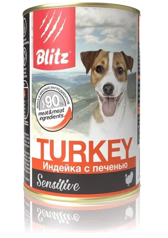 BLITZ Sensitive Индейка с печенью, корм консерв.полноц. для собак всех пород и возрастов, 400 гр