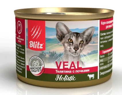 BLITZ Sensitive Телятина с почками, корм консерв.полноц. для собак всех пород и возрастов, 200 гр