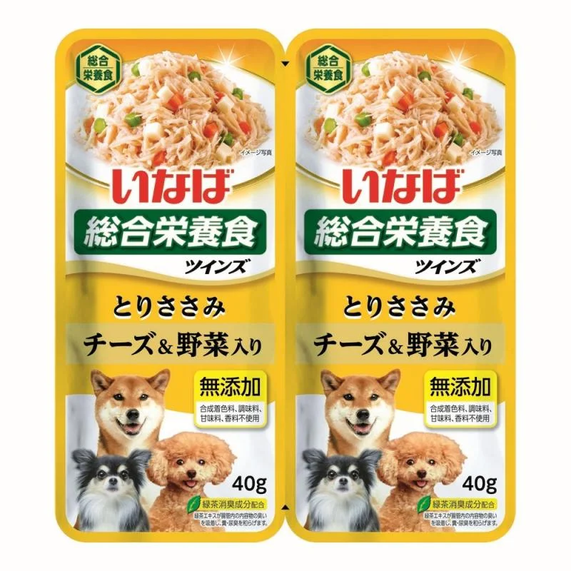 Суперпремиальный влажный корм для собак INABA TWINS (ИНАБА ТВИНС) от японского производителя Inaba приготовлен на основе нежного куриного филе с добавлением овощей и нежного сыра. Корм имеет высокопитательный состав и богат витаминами и минералами. Корма и лакомства Inaba отличаются высоким качеством и неповторимым вкусом, ведь они изготавливаются на основе отборных традиционных японских ингредиентов! Во все продукты добавлен экстракт зеленого чая, который, благодаря содержанию катехина, обладает нейтрализующим действием на запах содержимого кишечника. В состав добавлен витамин Е - натуральный антиоксидант, поддерживающий иммунную систему. Без искусственных добавок, красителей и консервантов.