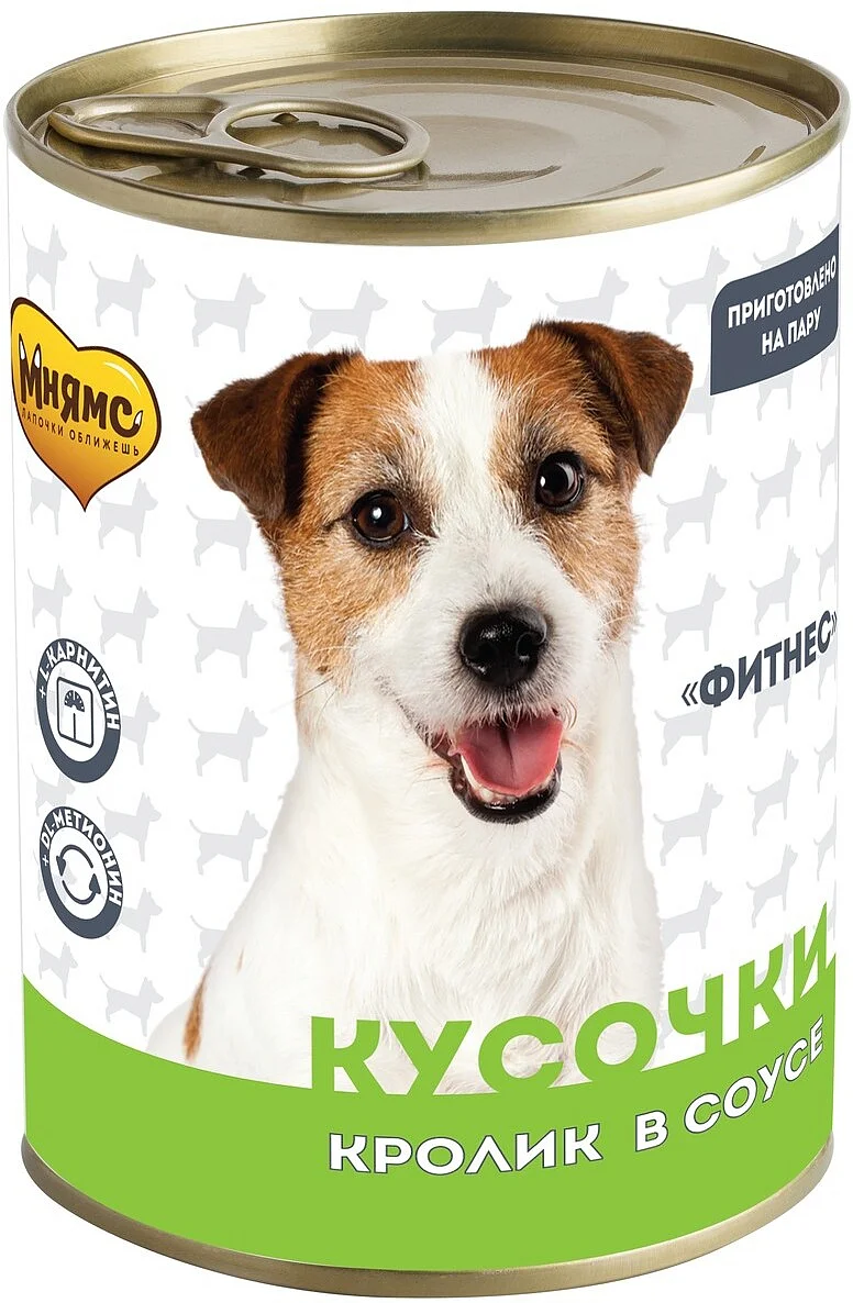 В современном мире собаки тоже должны поддерживать свою физическую форму и оптимальный баланс мышечной и жировой ткани. Именно поэтому кусочки в соусе с кроликом не только очень сытные и вкусные, но и содержат аминокислоты L-carnitine и DL-метионин для активного обмена веществ и снижения веса. Заботьтесь о своей собаке правильно вместе с «Мнямс».